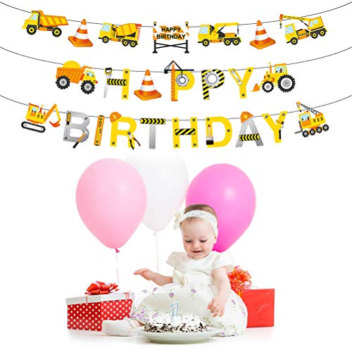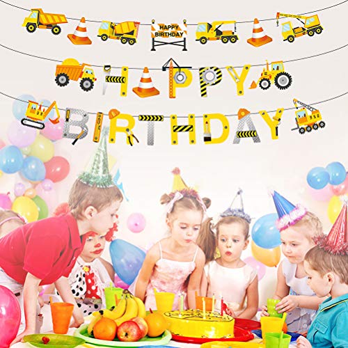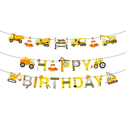 Specification: 2 Sets Construction Vehicle Theme Banner Colorful Bunting Letter Printing Flag Kids Party Hanging Garland Birthday Party…