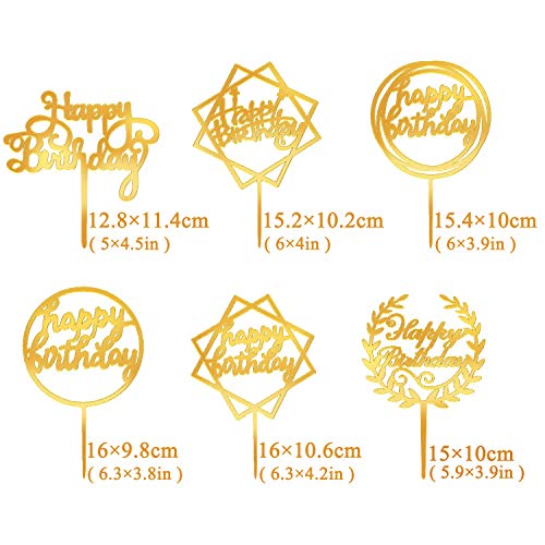 Specification: 6 stuks Happy Birthday Cake Toppers, Gouden Cake Topper voor Kinderen Volwassen Verjaardagstaart Decoraties, Acryl…