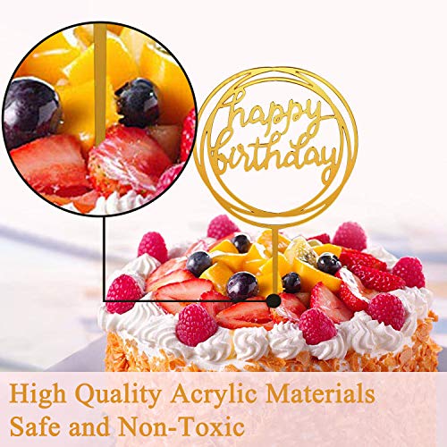 6 stuks Happy Birthday Cake Toppers, Acryl Cake Verjaardag Decoratie, Gouden Cupcake Topper voor Kinderen Volwassen Verjaardag Cake Glitter Supplies