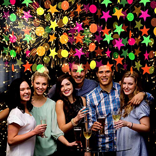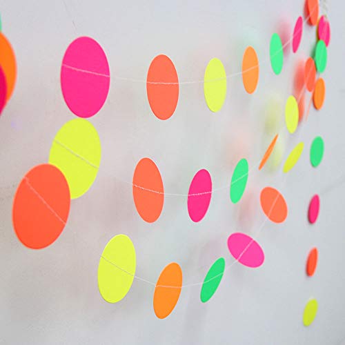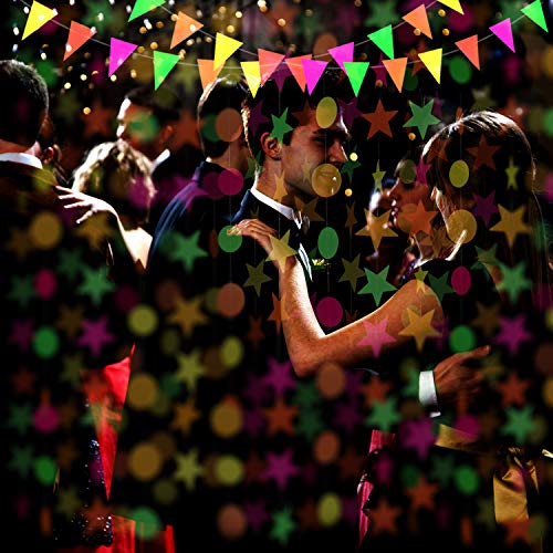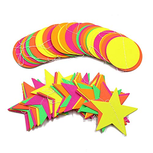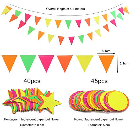 Specification: Globaldream Neon papieren slinger, 4,4 meter neon sterrenslinger ronde papieren slinger driehoekige vlaggetjes hangende…