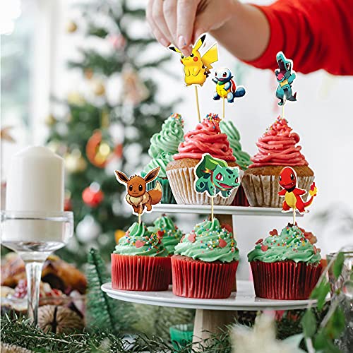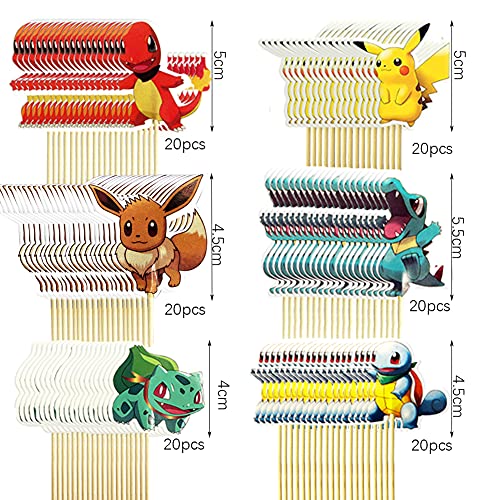PAKKET IS INCLUSIEF – Je krijgt 6 soorten Pokémon cake toppers, 120 stuks in totaal. Gelieve niet in de oven te zetten. Niet eetbaar, kan worden gewassen en hergebruikt.