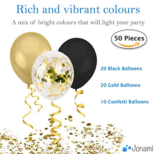 Specification: 50 Gouden en Zwarte Confetti Ballonnen Latex Transparante Ballondecoratie voor Verjaardag en Afstudeerfestijn