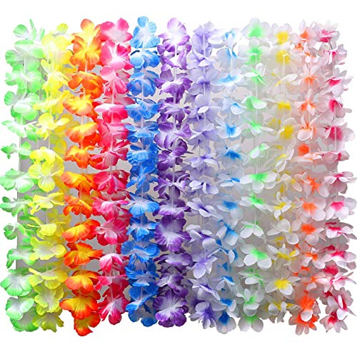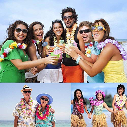 Specification: BangShou Tropische Hawaiiaanse Slingers Luau Bloem Lei,Hawaiiaanse Ketting Armband voor Strand Thema Feestbenodigdheden…