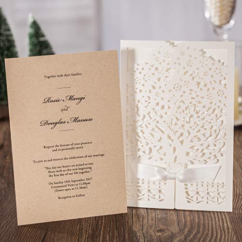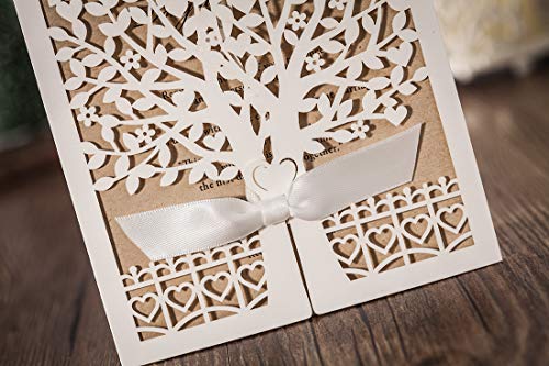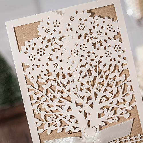 WISHMADE White Laser Cut Wedding Uitnodigingen met Boom en Hek Design Kit, Uitnodigingen met enveloppen voor Engagement…